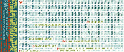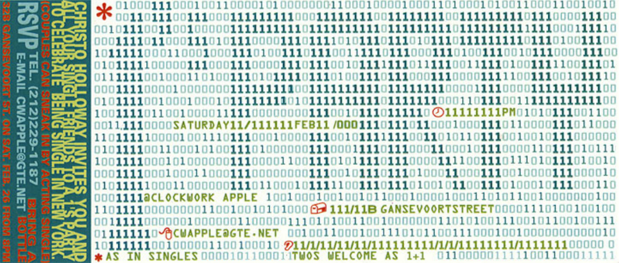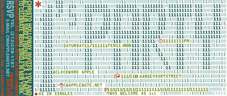 After becoming single, I decided to throw a single's party. To make the point very clear, the design consisted out of mainly ones and zeros.